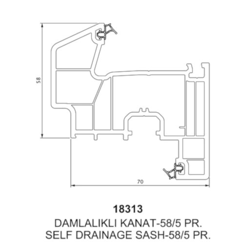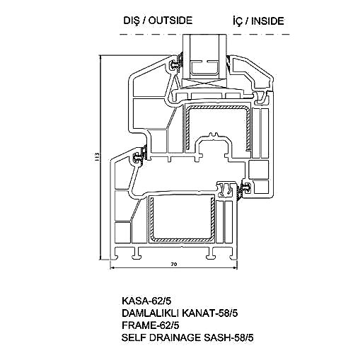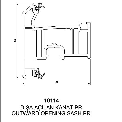 - Düz kanat profiline ilave olarak damlalıklı kanat profili seçeneği de sunulmaktadır. Damlalıklı kanat profilinde damlalık kısmı 70mm ölçüsüne dahil değildir. Bu kısım dahil edildiğinde profil ölçüsü 80mm olmaktadır.