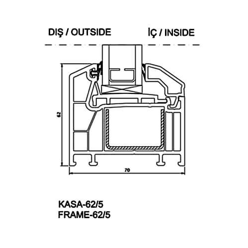 - Kendinden pervazlı kasa profili ile iç yüzeyde, doğrama-duvar birleşimlerinde görsel bütünlük sağlar.
