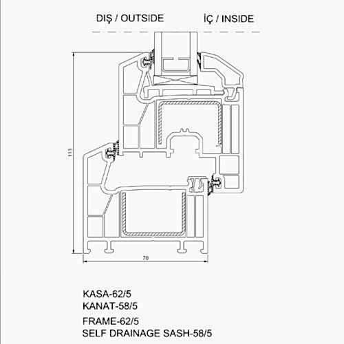 - 5 odacıklı profilleriyle ısı ve ses yalıtımında yüksek performans sağlar.