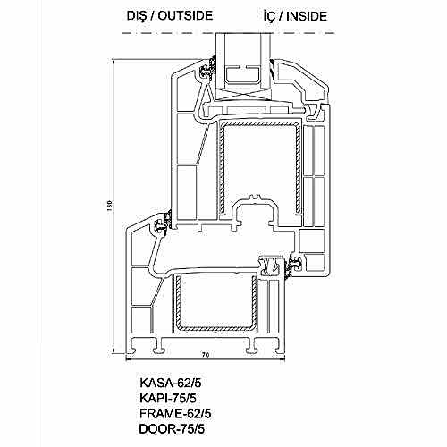 - Pimapen Carisma Pvc Pencere ve Pvc Kapı Sistemlerinin ana profilleri 70 mm genişliktedir.