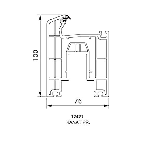 - Kanat profili 76 mm genişliğinde ve 4 odacıklıdır.